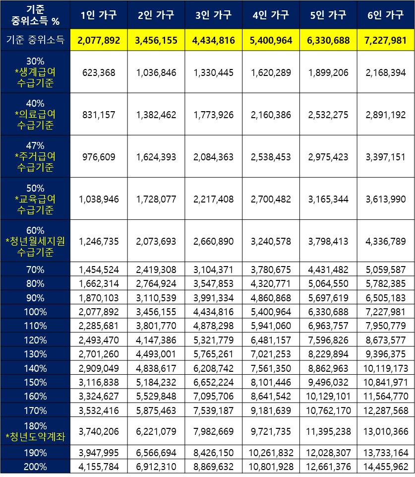 - 기준 중위소득 100% = 기준 중위소득 X 1